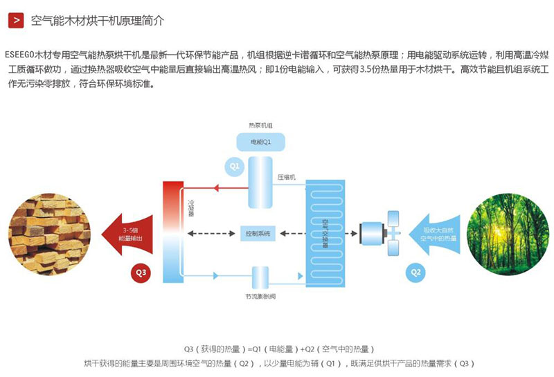分体式木材热泵烘干器是指将木材中的水分散失,即通过人为的方法强制散失木材中的水分,从而将木材的水分含量降低到相当于当地均衡含水率的水平,从而避免木材在储存、运输和使用过程中发生霉变、霉菌滋生以及木材劈裂、变形。木器烘干机是一种能有效去除木料中水分的设备。